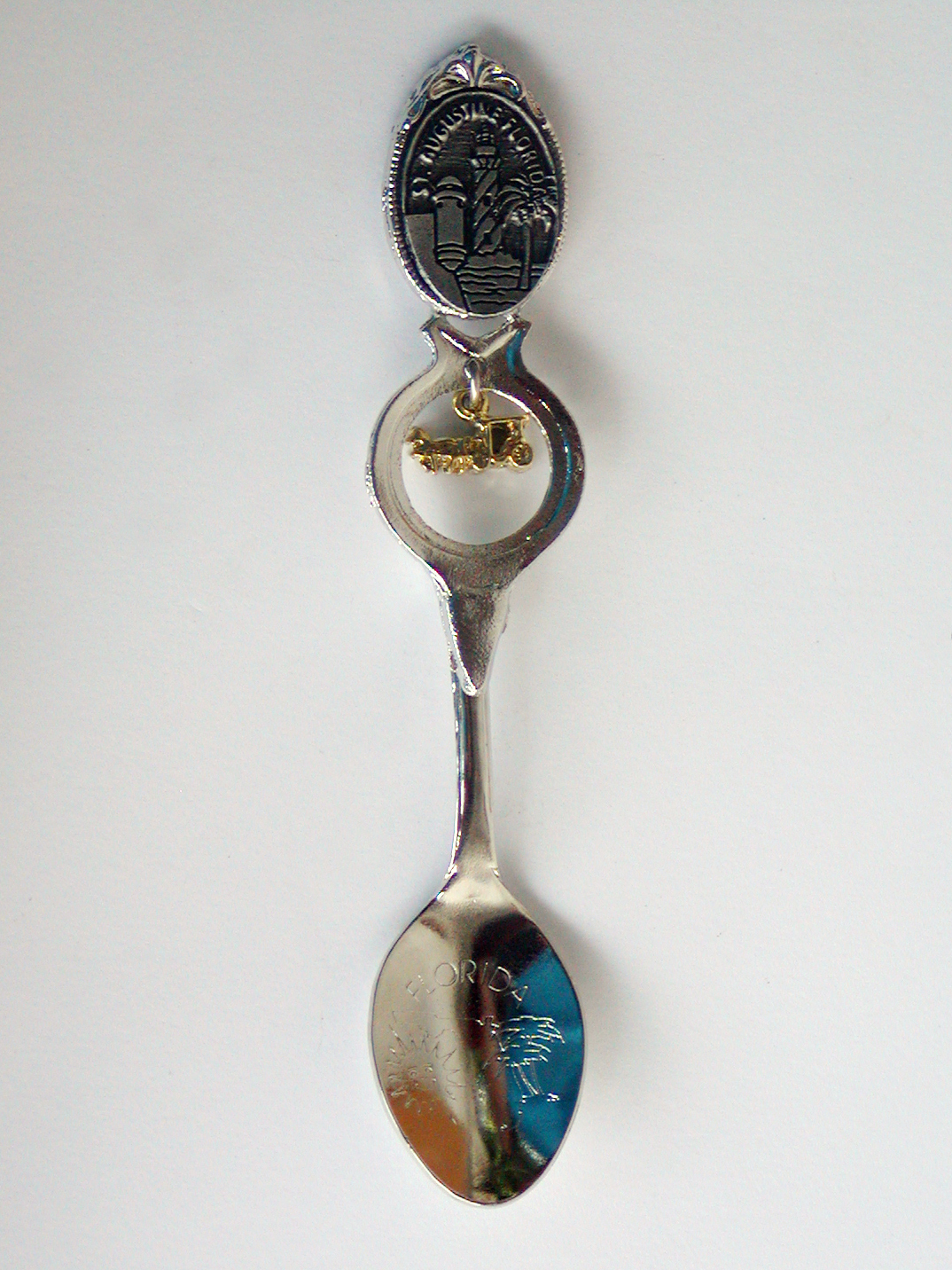 St. Augustine souvenir pewter-top spoon with Horse & Buggy dangle.