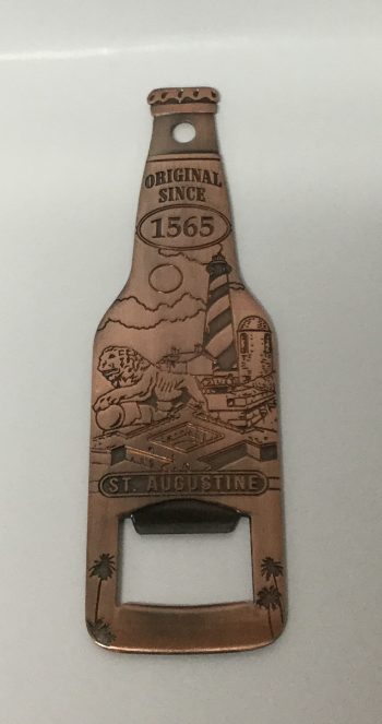 Blue Leather Can Cooler with St. Augustine Skyline.