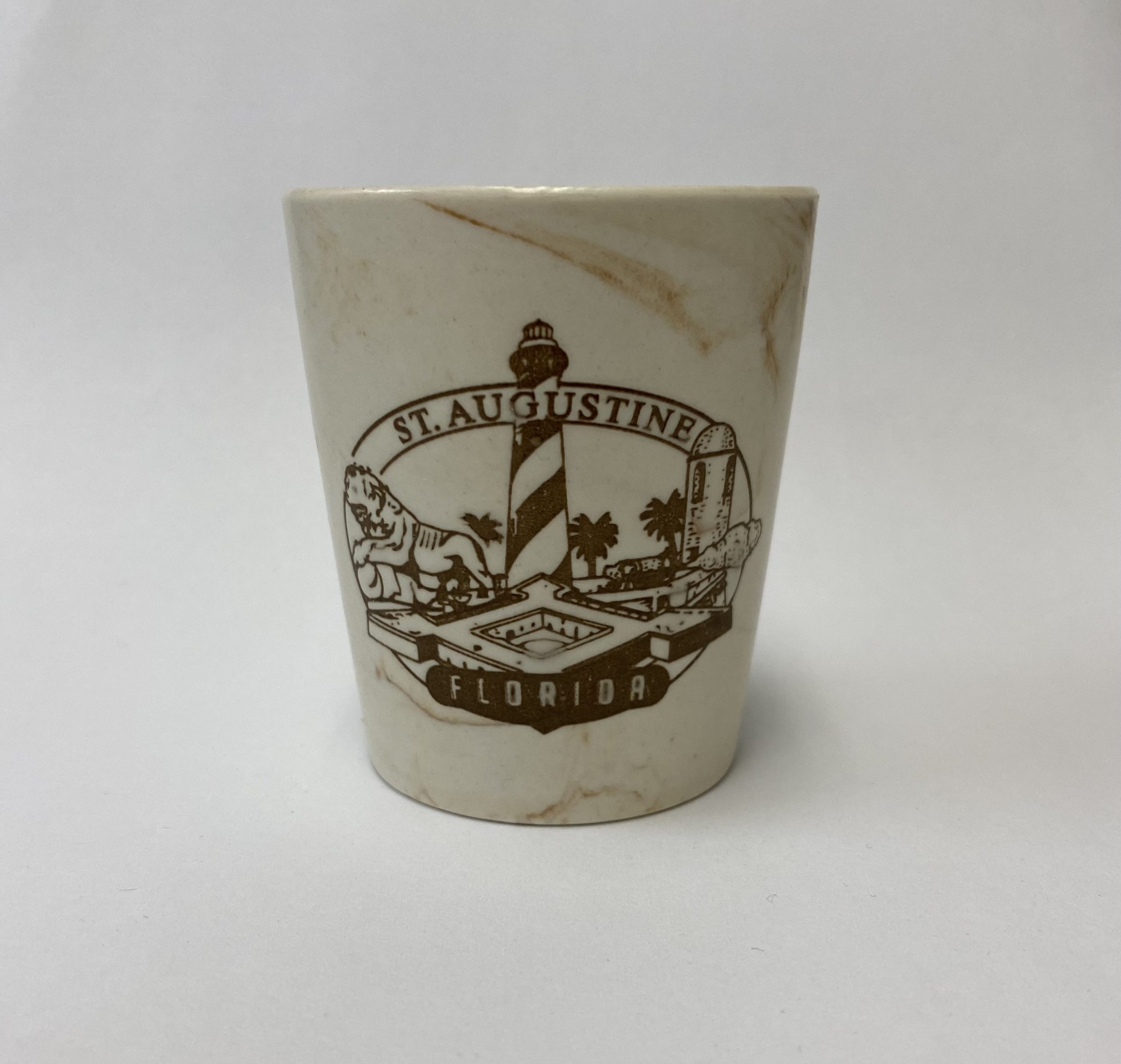 This heavy duty marbled shot glass is dishwasher safe and features many of St. Augustine’s historic scenes.